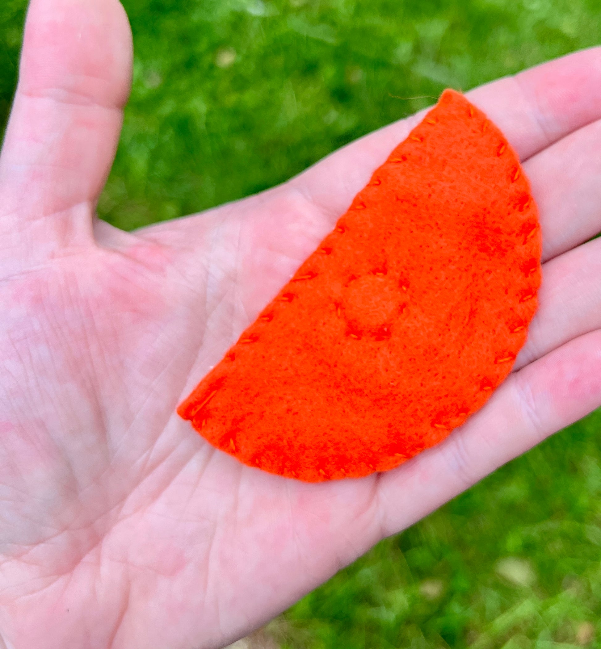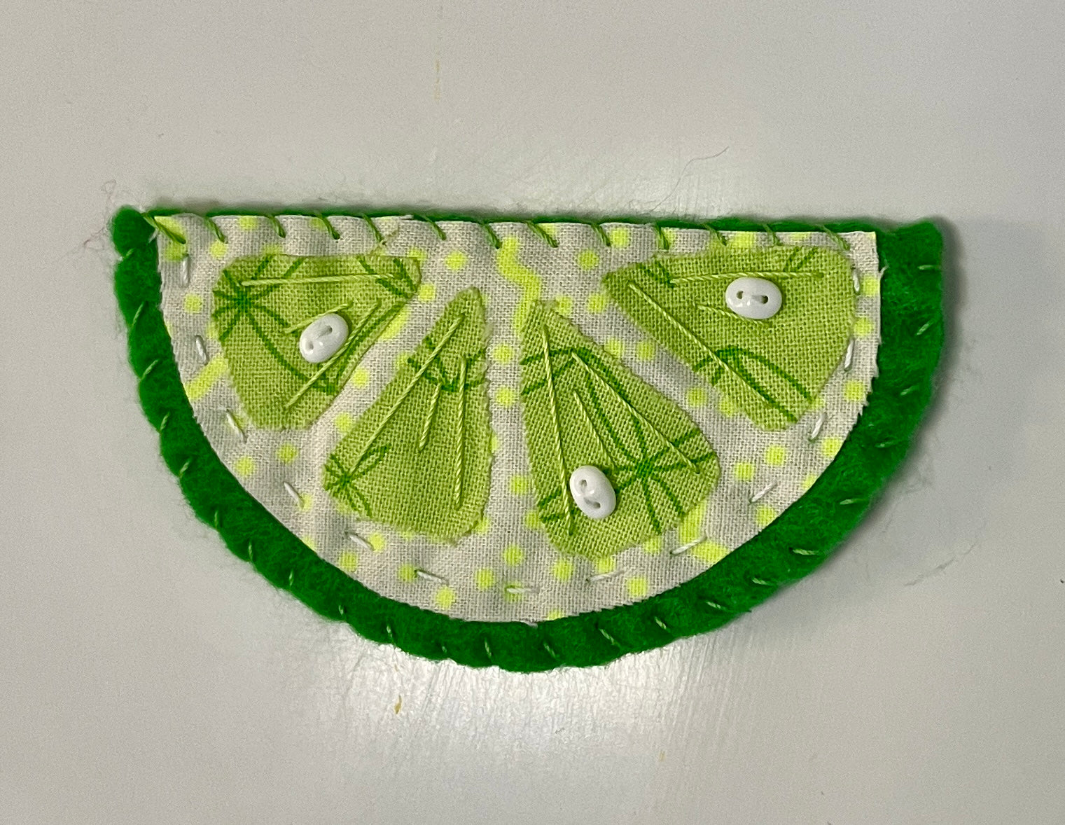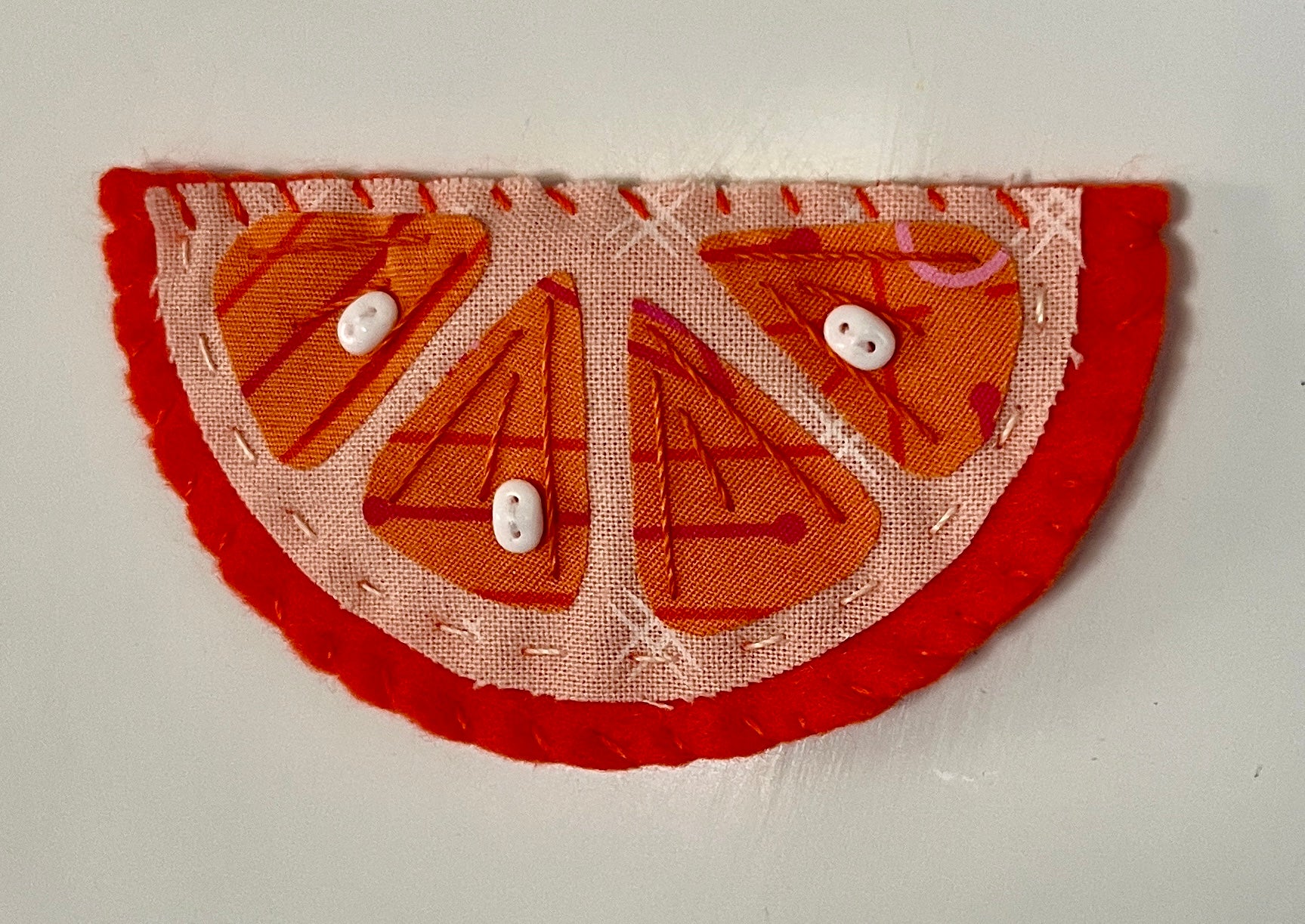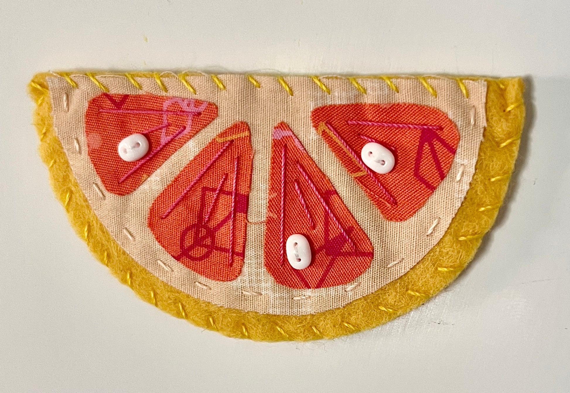 Hand-stitched and beaded refrigerator magnets that look like citrus wedges!