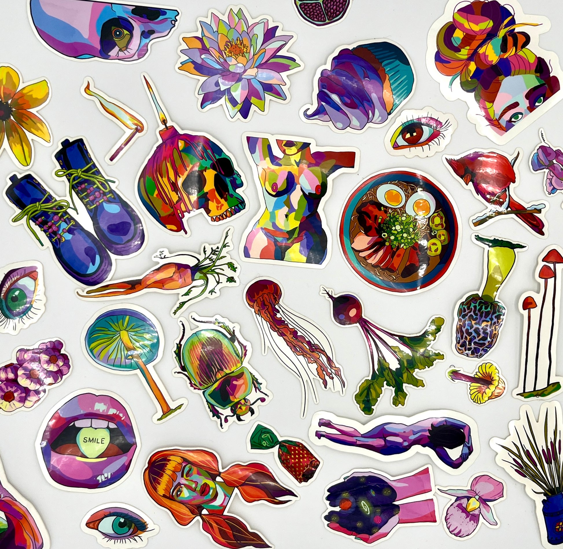 3 mini and 2 large stickers, randomly selected. A $16 value!